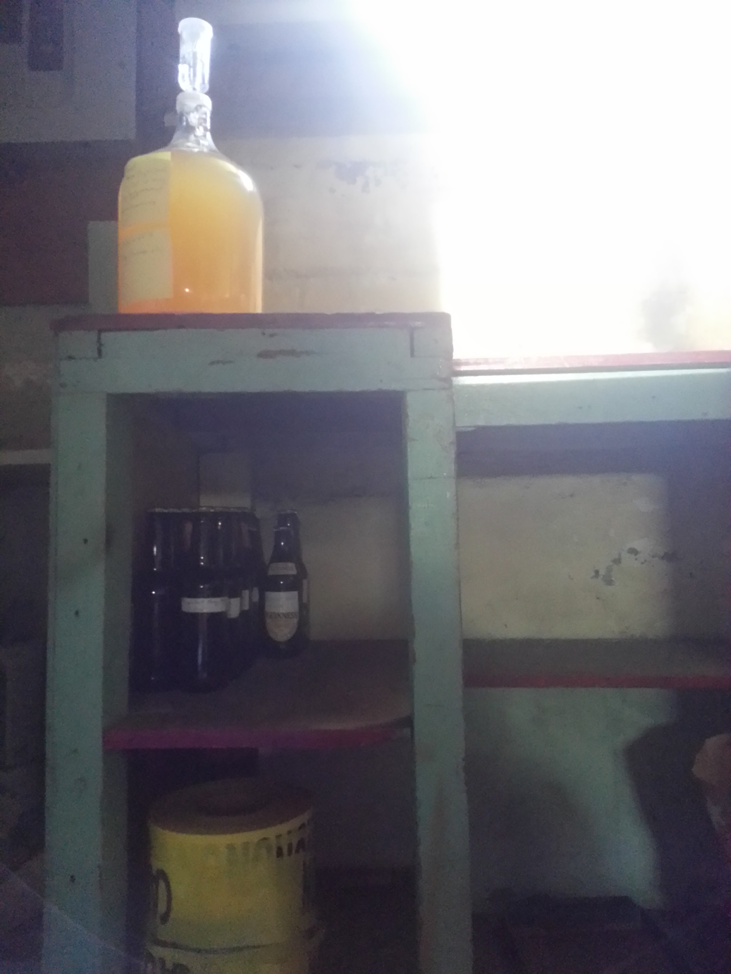This means their basement storage room is unoccupied, apart from all the junk they left behind. Until someone new moves in, I’m appropriating it as my wine cellar! There’s a great, reasonably dark shelf for finished bottles, where I’ve put what’s left of the beer. And another, darker shelf for all that caution tape the neighbors were hoarding…