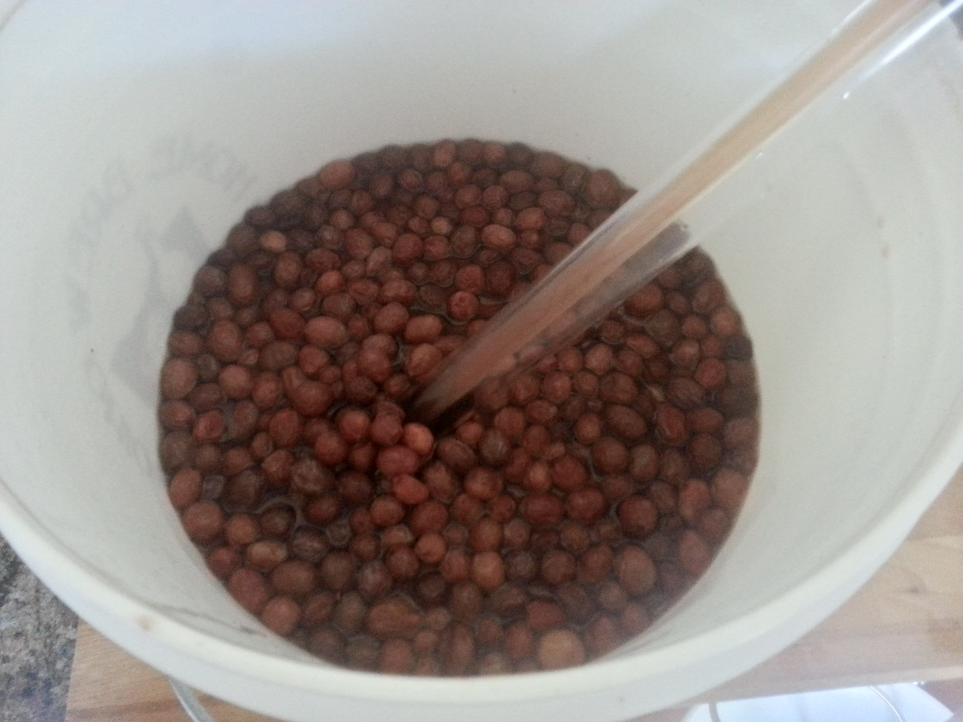 I also racked a mulberry melomel that had been fermenting in a bucket for a few weeks. True to form, I’m following a half-remembered friend-of-a-friend forum post recipe and hoping for the best. In a departure from my usual methods, I soaked the berries and sugar in water overnight and added the resulting strained and simmered juice to the honey and more water. After it had cooled, I combined it with raisins and yeast and let it sit in an air-locked bucket for two weeks. I opened it up to find some very alcoholic reconstituted grapes floating on a sea of hooch. I have got to get my alcohol content under control before I go blind.