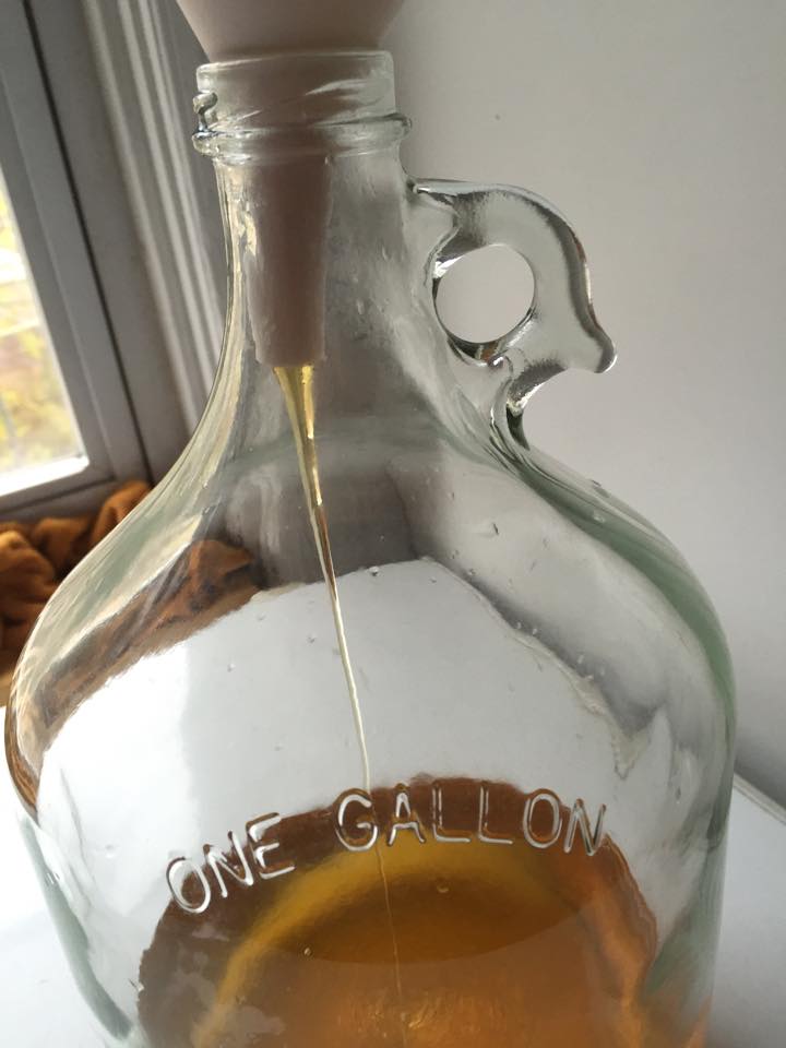 I put my tea in a fermentation bucket and added everything but the yeast. This included a crushed Campden tablet that would sterilize the must over the course of another 24 hours. I also added a teaspoon of yeast nutrient and enough sugar for my hydrometer to read 1.160. I was just a little short on sugar and made up for it in honey. This is the first wine I’ve made by adjusting the sugar to the correct amount instead of blindly adding the number of cups the recipe calls for.